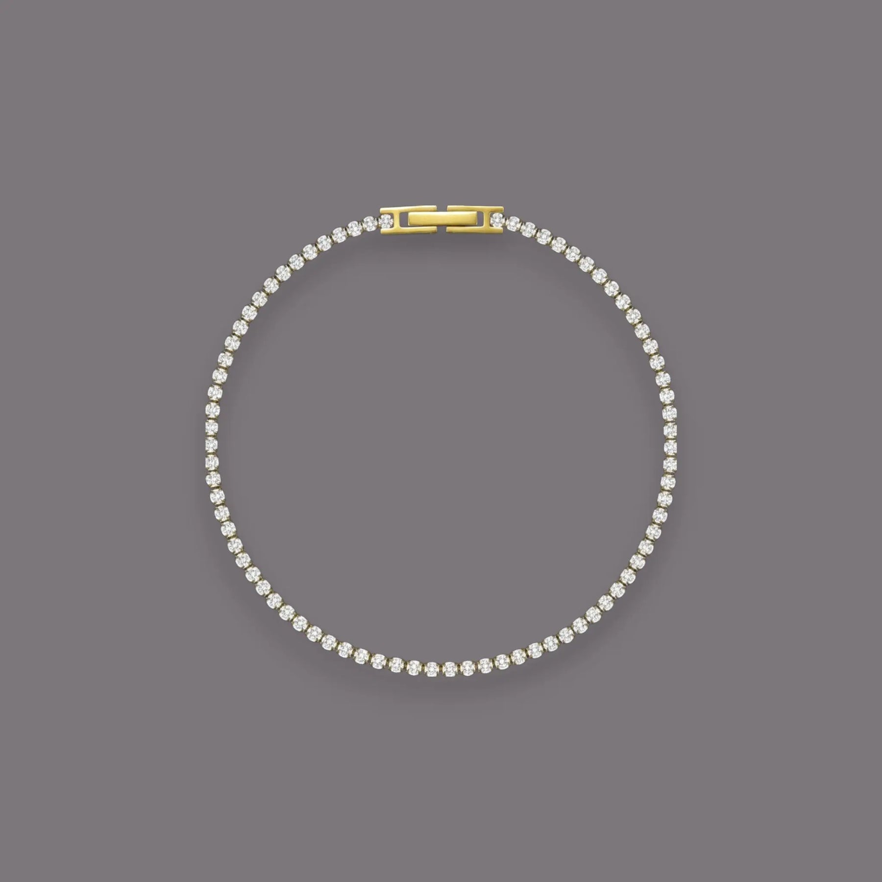 Regular price $80.00 Save $-80.00Understated elegance at its finest. This petite tennis bracelet features a continuous stream of 4mm high-quality Moissanite stones for a look that is delicate yet undeniably brilliant. Crafted in durable stainless steel, it is designed to be lived in, offering a lightweight feel that’s perfect for all-day wear.