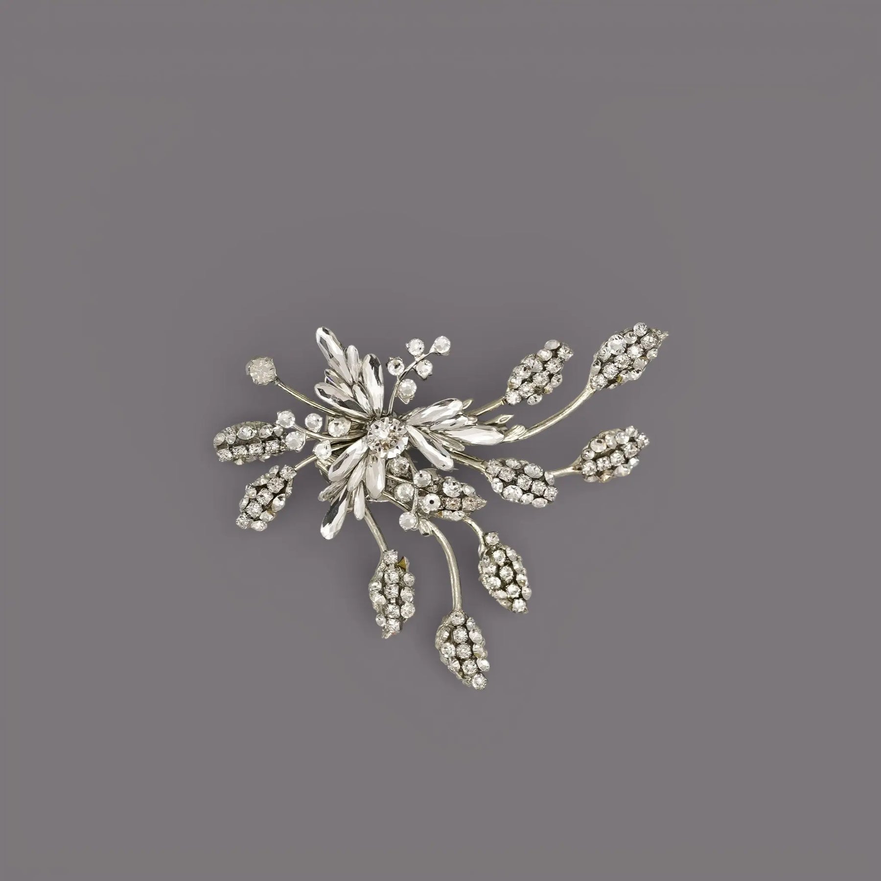 Construction: Hand-set crystal brooches wire-wrapped onto high-quality metal combs