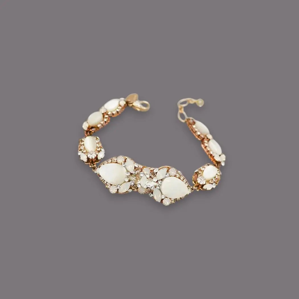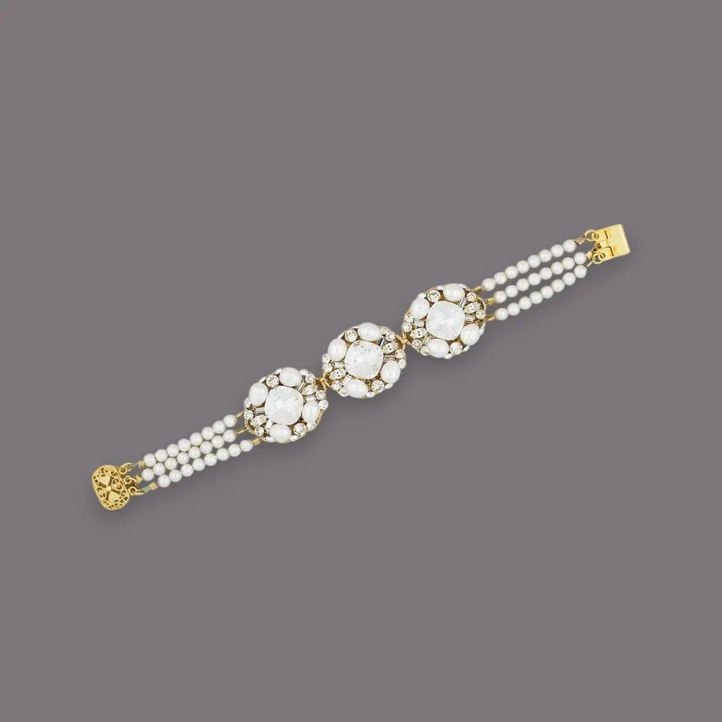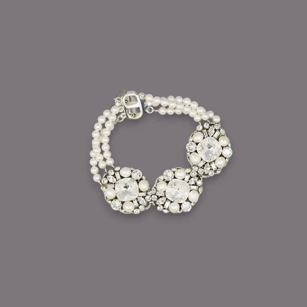 Regular price $305.00 Save $-305.00Make a statement with our Freshwater Pearl and Rhinestone navette brooch cluster bracelet. Matches our Blakely Post Earring.