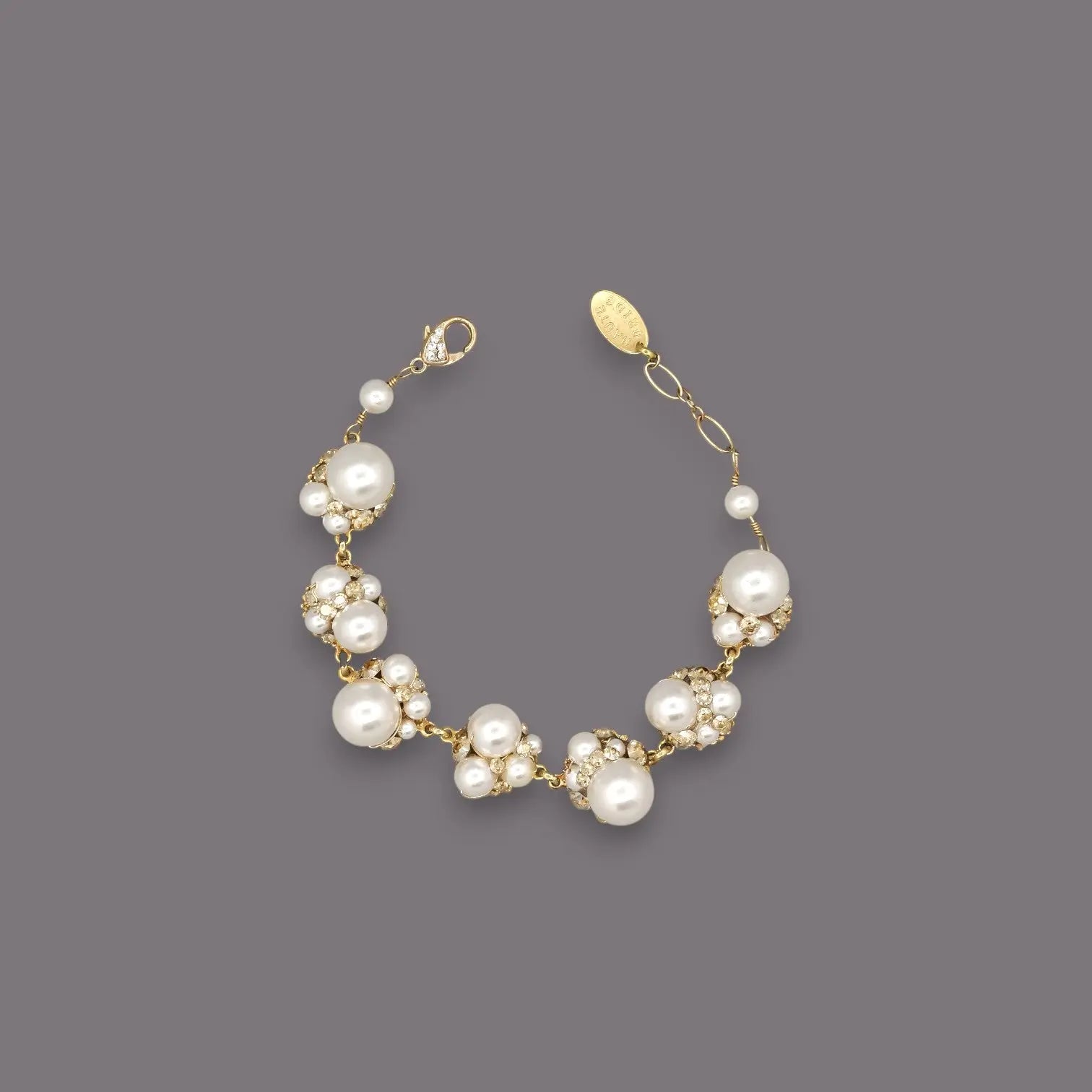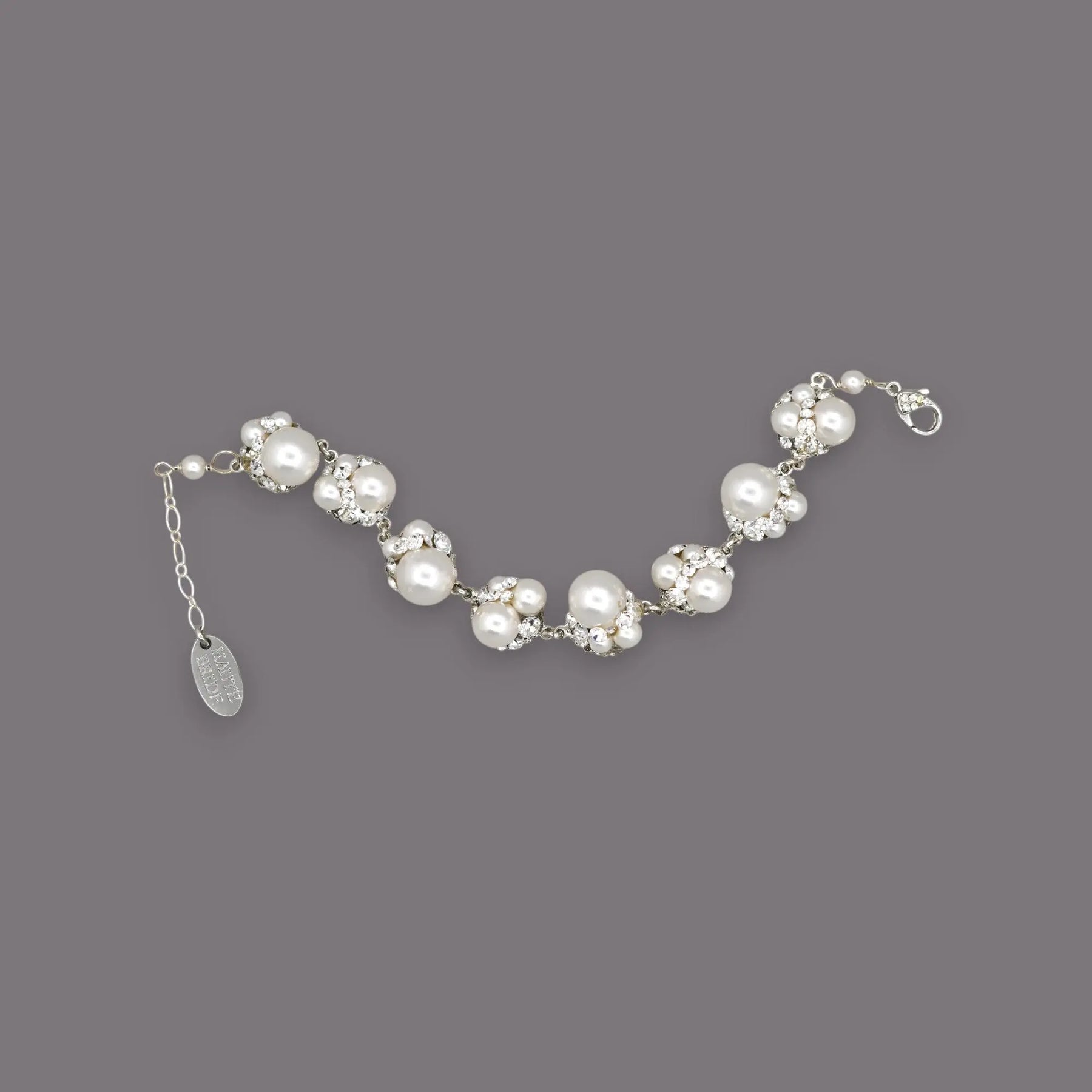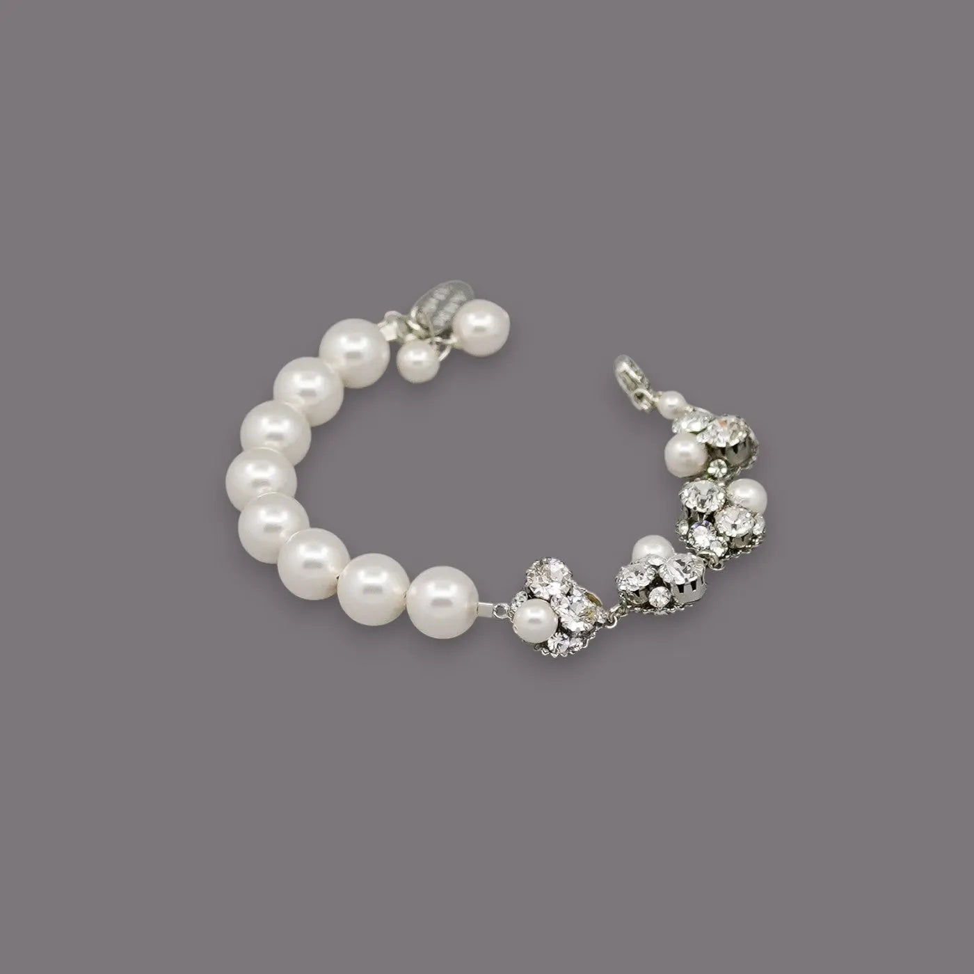 Regular price $65.00 Save $-65.00One of our favorites! A classic and elegant Austrian Crystal Pearl bracelet with rhinestone pave lobster clasp.Ā
